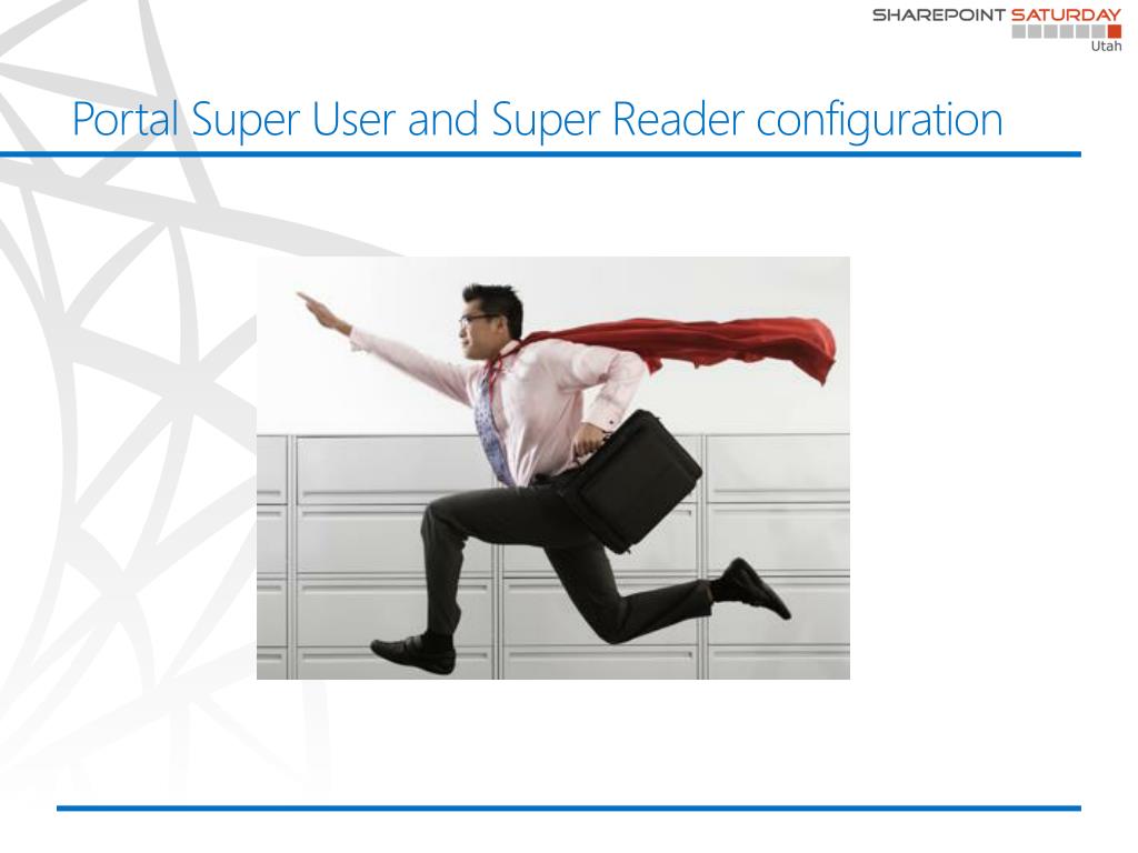 Portal Super User and Super Reader configuration • If you don’t configure the Portal Super User Account and the Portal Super Reader account properly you could have: • Performance Issues • Access denied • Warning events in the event viewer • The 2 accounts are used by the object cache