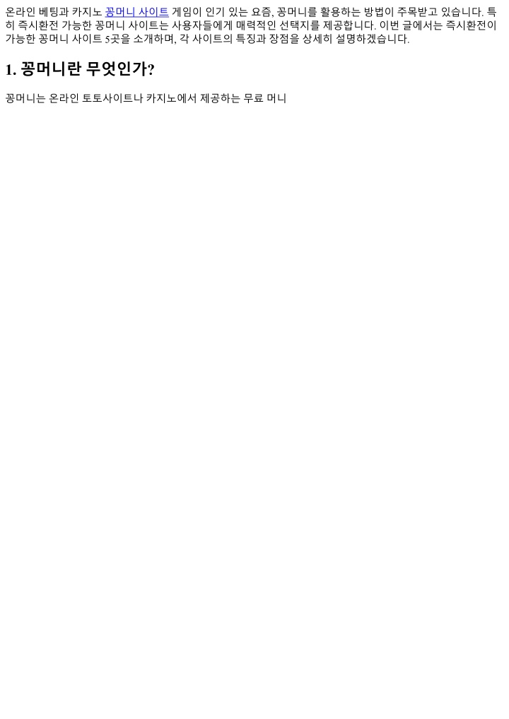 1. 온라인베팅과카지노꽁머니사이트게임이인기있는요즘, 꽁머니를활용하는방법이주목받고있습니다. 특 히즉시환전가능한꽁머니사이트는사용자들에게매력적인선택지를제공합니다. 이번글에서는즉시환전이 가능한꽁머니사이트 5곳을소개하며, 각사이트의특징과장점을상세히설명하겠습니다. 1. 꽁머니란무엇인가? 꽁머니는온라인토토사이트나카지노에서제공하는무료머니