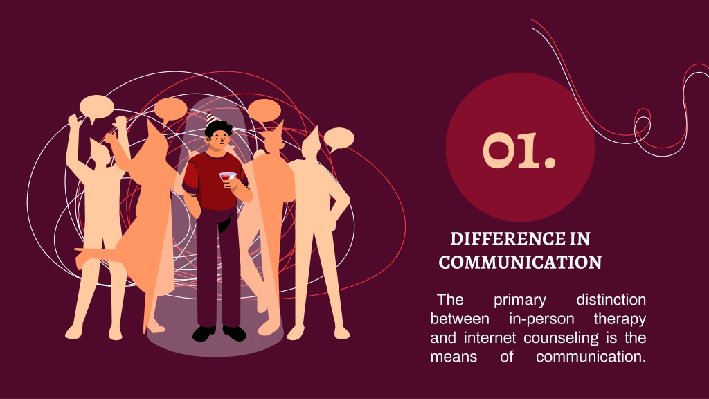 01. DIFFERENCE IN COMMUNICATION The primary distinction between in-person therapy and internet counseling is the means of communication.