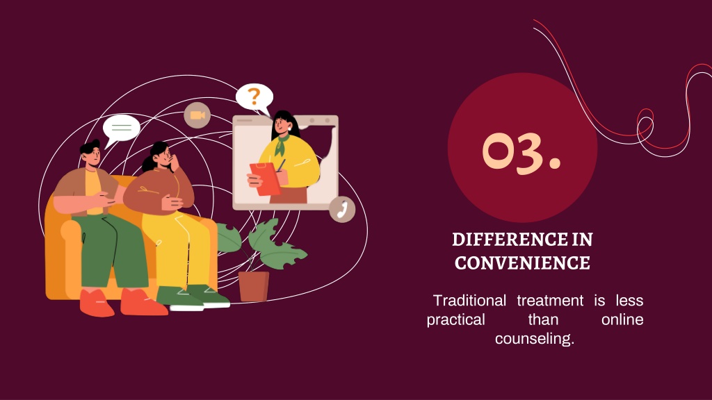 03. DIFFERENCE IN CONVENIENCE Traditional treatment is less practical than online counseling.