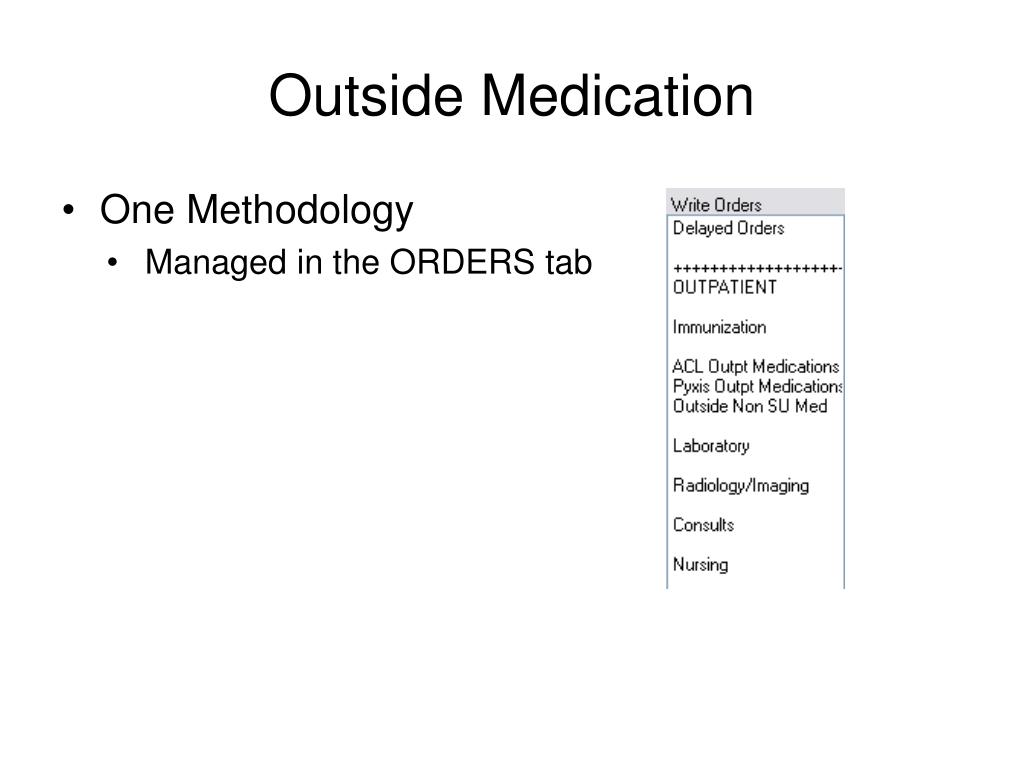 Outside Medication • One Methodology • Managed in the ORDERS tab