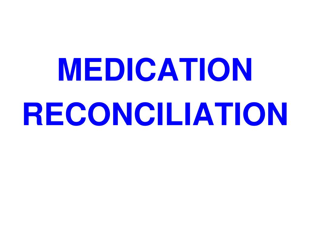 Medication Reconciliation • Improve patient safety • Assist in identification of chronic medications across the continuum of care • Encourage patients to become more involved with their healthcare • Improve compliance with Joint Commission standards regarding medication reconciliation