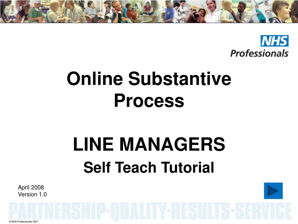 Online Substantive ProcessLINE MANAGERSSelf Teach Tutorial April 2008 Version 1.0