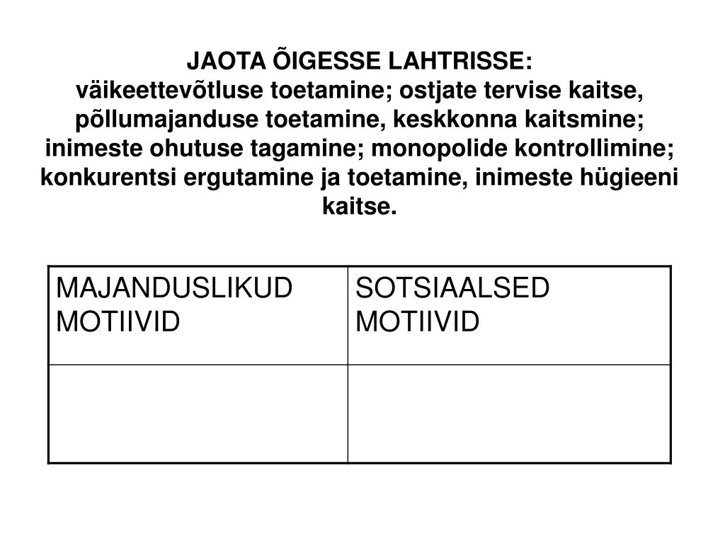 Riigi sekkumise motiivid • MAJANDUSLIKUD MOTIIVID • SOTSIAALSED MOTIIVID