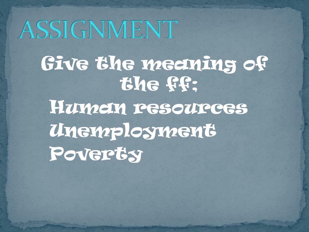 ASSIGNMENT Give the meaning of the ff; Human resources Unemployment Poverty