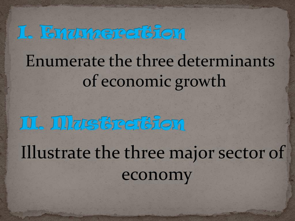 I. Enumeration Enumerate the three determinants of economic growth II. Illustration Illustrate the three major sector of economy