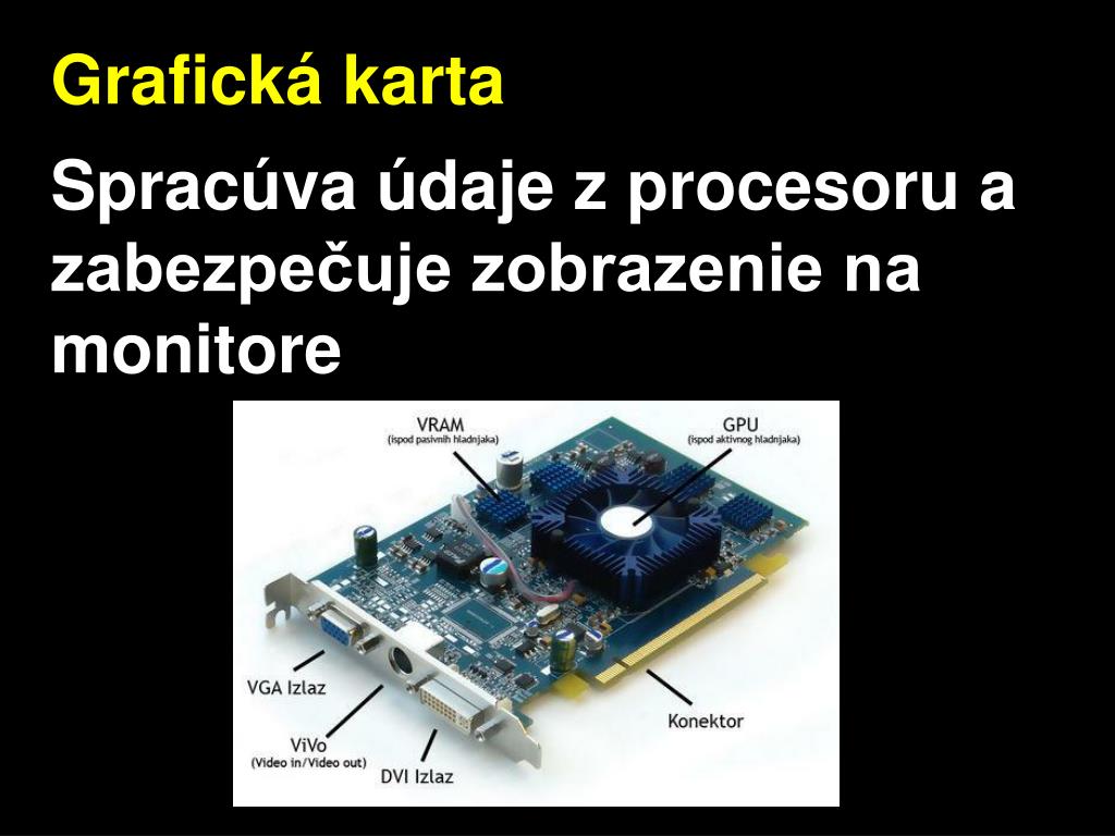 Grafická karta Spracúva údaje z procesoru a zabezpečuje zobrazenie na monitore
