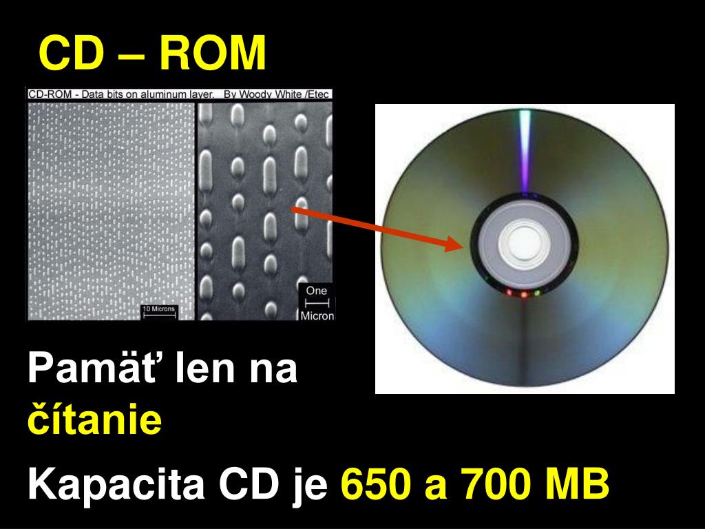 CD – ROM Pamäť len na čítanie Kapacita CD je 650 a 700 MB