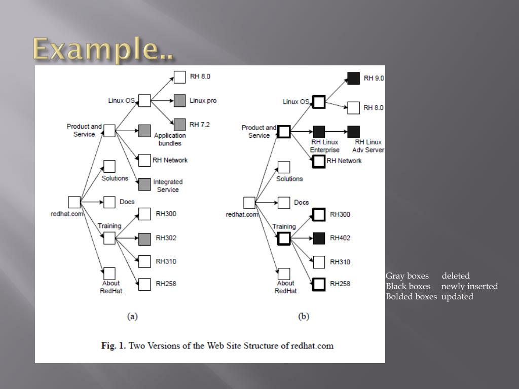 Example.. Gray boxes deleted Black boxes newly inserted Bolded boxes updated