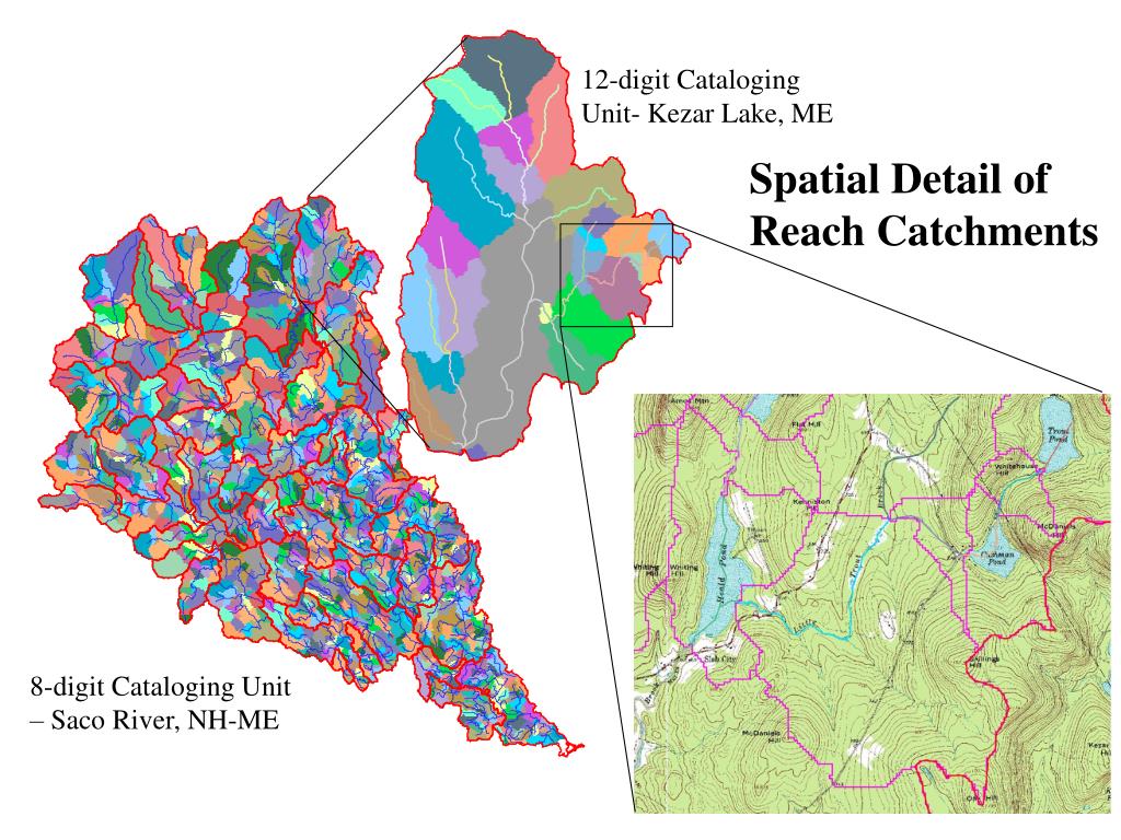 12-digit Cataloging Unit- Kezar Lake, ME Spatial Detail of Reach Catchments 8-digit Cataloging Unit – Saco River, NH-ME