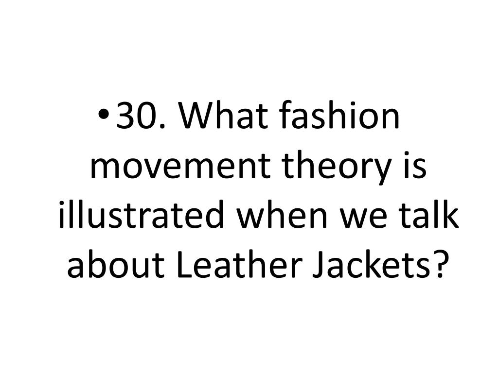 30. What fashion movement theory is illustrated when we talk about Leather Jackets?