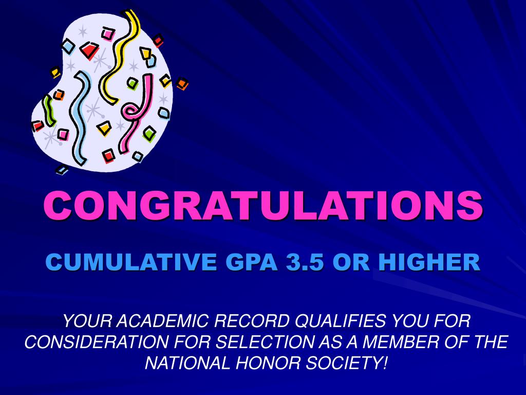 CONGRATULATIONS CUMULATIVE GPA 3.5 OR HIGHER YOUR ACADEMIC RECORD QUALIFIES YOU FOR CONSIDERATION FOR SELECTION AS A MEMBER OF THE NATIONAL HONOR SOCIETY!