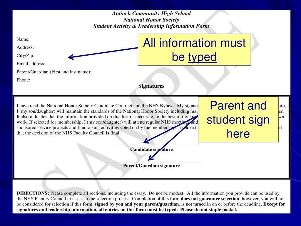 All information must be typed Parent and student sign here