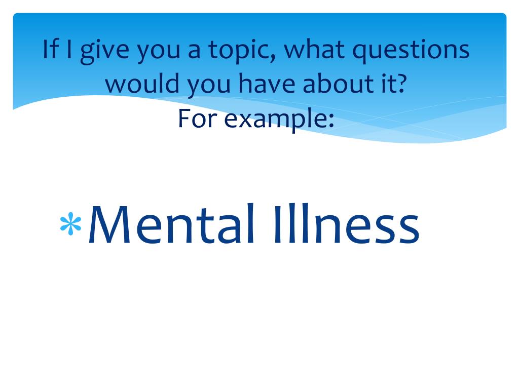 If I give you a topic, what questions would you have about it?For example: Mental Illness
