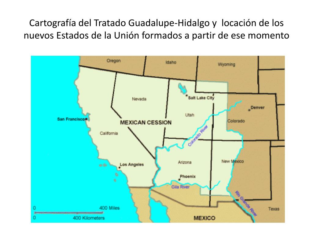 Cartografía del Tratado Guadalupe-Hidalgo y locación de los nuevos Estados de la Unión formados a partir de ese momento