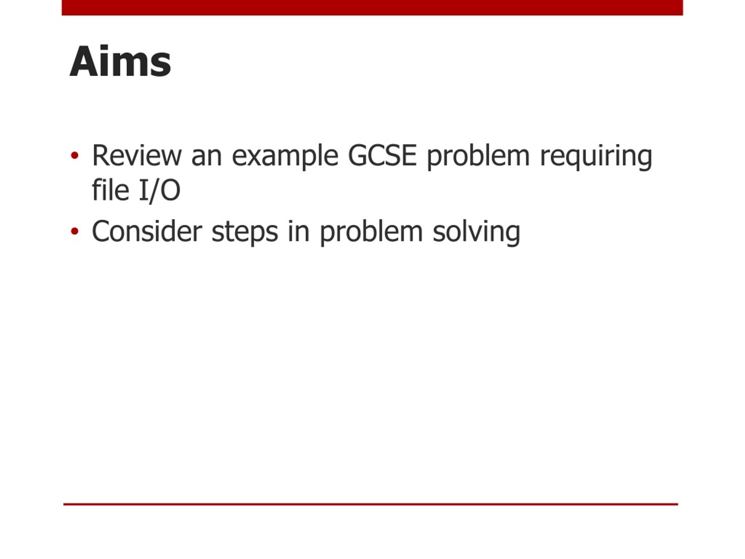 Aims • Review an example GCSE problem requiring file I/O • Consider steps in problem solving
