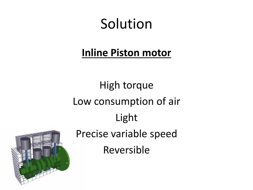 Solution Inline Piston motor High torque Low consumption of air Light Precise variable speed Reversible