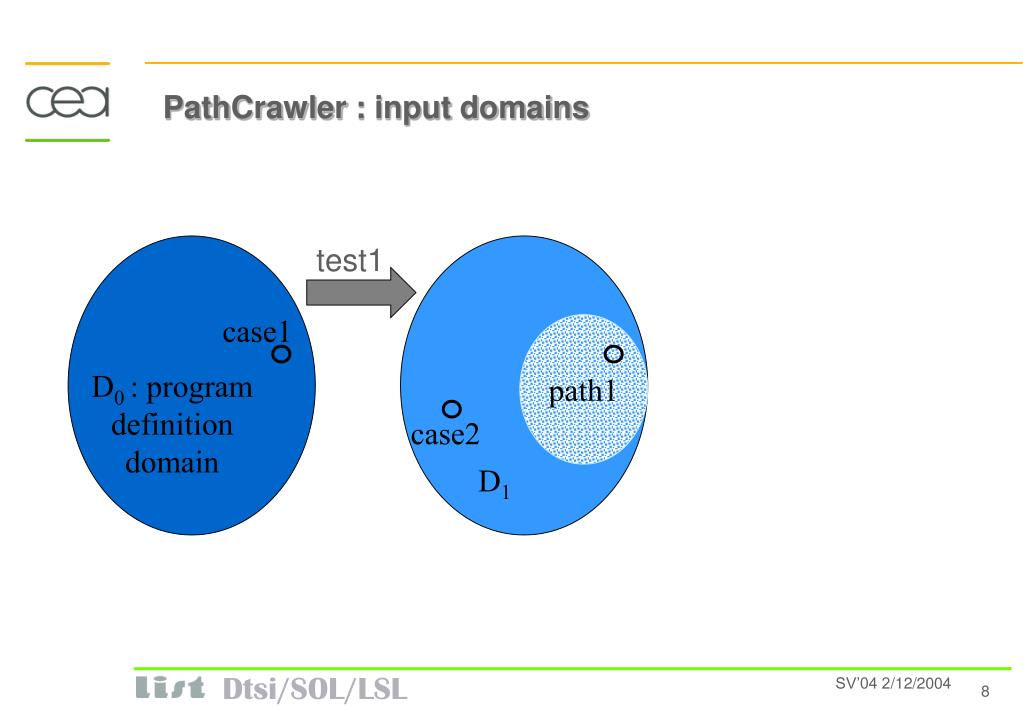 test1 PathCrawler : input domains D0 : program definition domain case1 path1 D1