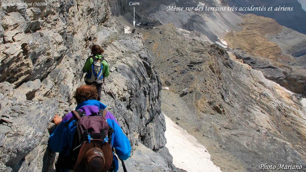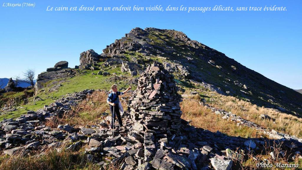 Le cairn est dressé en un endroit bien visible, dans les passages délicats, sans trace évidente. . . . . . . .