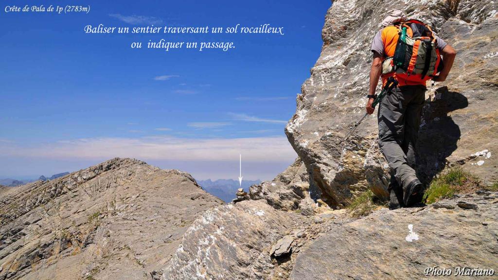Baliser un sentier traversant un sol rocailleux ou indiquer un passage. . . . . . . .