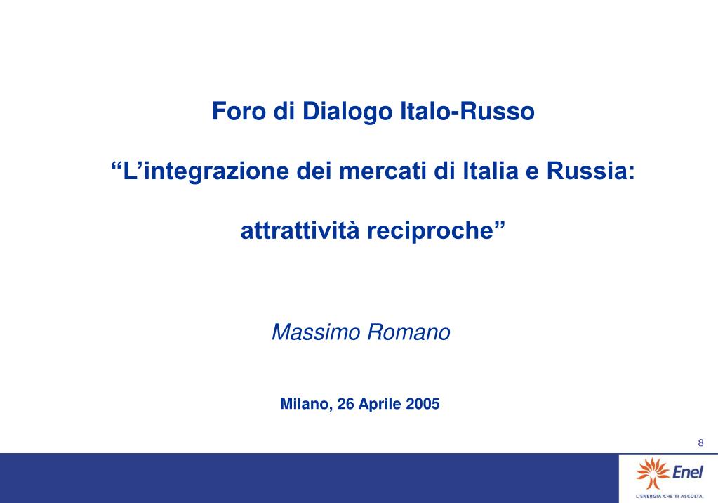 Foro di Dialogo Italo-Russo “L’integrazione dei mercati di Italia e Russia: attrattività reciproche” Massimo RomanoMilano, 26 Aprile 2005
