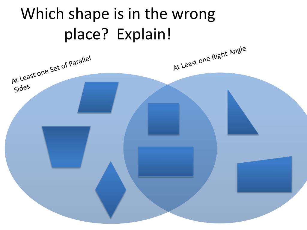 Which shape is in the wrong place? Explain! At Least one Right Angle At Least one Set of Parallel Sides
