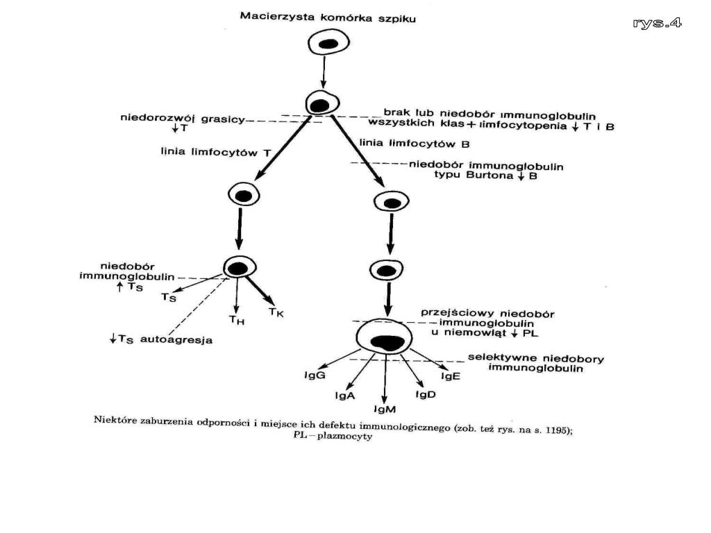 11. Niektóre informacje dotyczące chorego lub jego rodziny mogą sugerować upośledzenie odporności. Są to:1)Poronienia, porody niewczesne, śmierć noworodków w rodzinie; 2)nieprawidłowy przebieg ciąży, dystrofia wewnątrzmaciczna, wcześniactwo; 3)podejrzenie przebytych przez matkę chorób w czasie ciąży (np. różyczka, toksoplazmoza,cytomegalia i inne); nawracające zakażenia ,choroby autoimmulogiczne wśród krewnych, selektywny brak immunoglobulin (np. IgA), obniżona liczba limfocytów we krwi nawet bez objawów klinicznych u członków bliższej i dalszej rodziny. tabelka-zaburzenia odpornoSCI