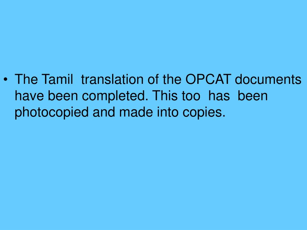 The Tamil translation of the OPCAT documents have been completed. This too has been photocopied and made into copies.