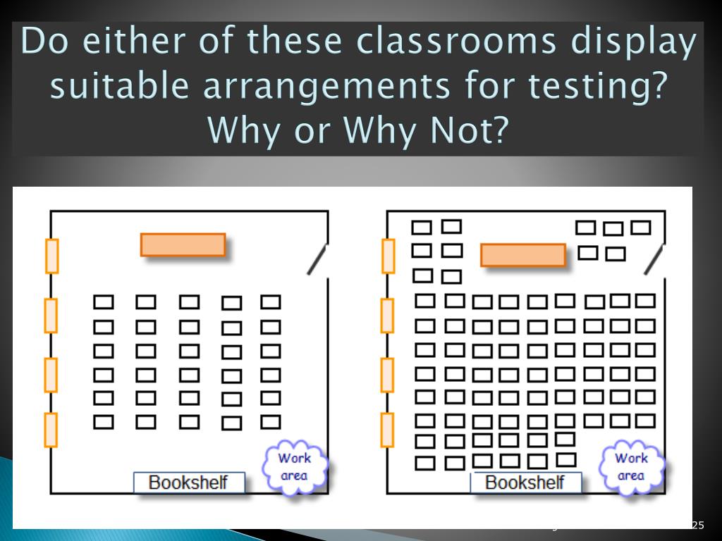 Do either of these classrooms display suitable arrangements for testing?Why or Why Not?