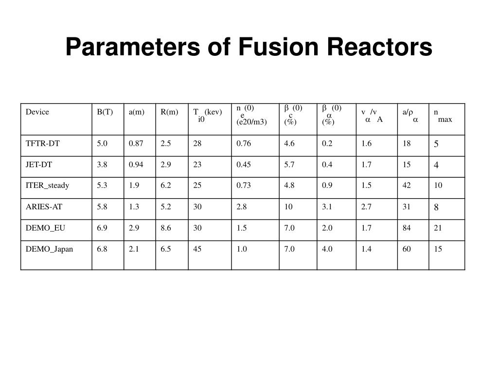 Outline • Roles of energetic particles in fusion plasmas • Single particle confinement • MHD limit: Shear Alfven continuum and Alfven eigenmodes • Linear Kinetic Stability: discrete AE and EPM • Nonlinear Physics: saturation mechanisms, frequency chirping, multi-mode coupling • Prospect for ITER and DEMO • Important problems for future