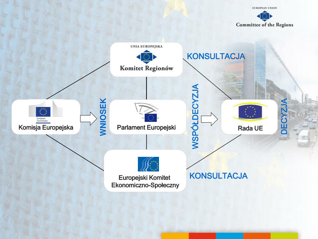 KONSULTACJA WSPÓŁDECYZJA DECYZJA WNIOSEK Komisja Europejska Parlament Europejski Rada UE KONSULTACJA Europejski Komitet Ekonomiczno-Społeczny