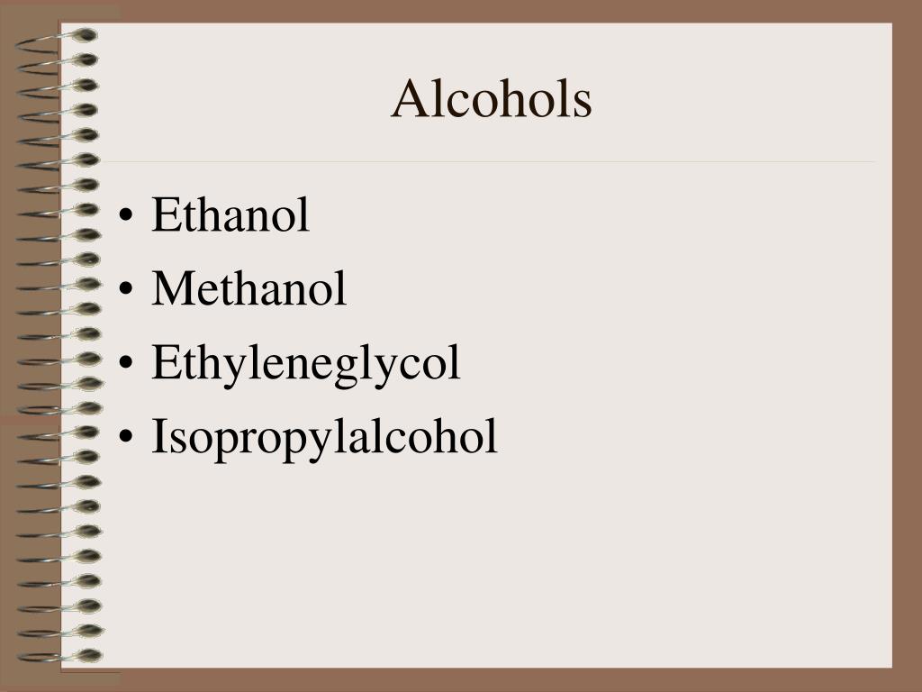 Alcohols • Ethanol • Methanol • Ethyleneglycol • Isopropylalcohol