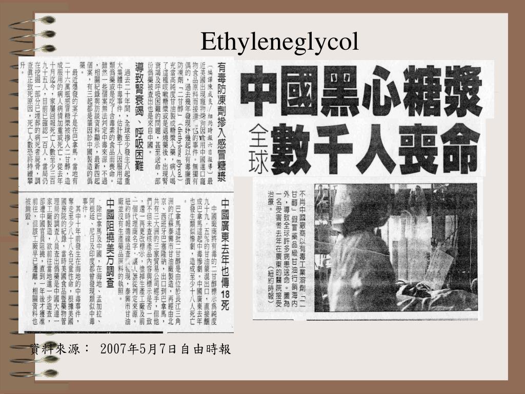Ethyleneglycol 資料來源: 2007年5月7日自由時報
