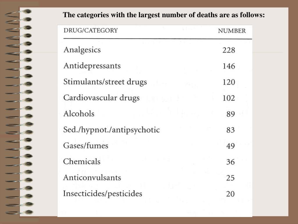 The categories with the largest number of deaths are as follows: