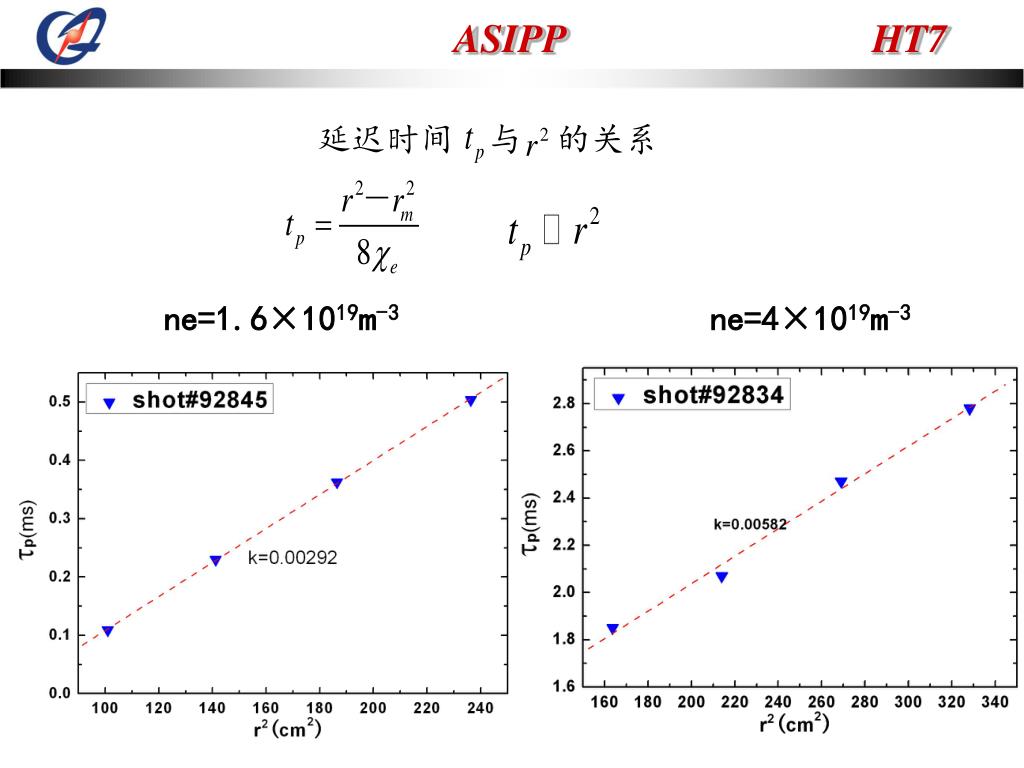 ASIPP HT7 延迟时间 与 的关系 ne=1.6×1019m-3 ne=4×1019m-3