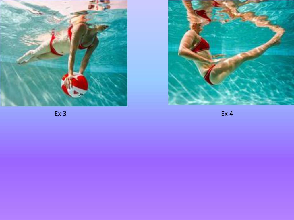 Exercitiul 3 • Stai in apa cu fata in jossi tine mingea de plaja in maini, la suprafataapei, cu bratele perfect drepte, intinseinainte.Pastreazabratele perfect drepte, in timpcetragi cu rapiditatemingea sub tine, pana la nivelulcoapselor.Candmingeaeste la nivelulcopaselor, indoaiebratelesiridic-o la suprafata, in pozitia de start.Repetaapoimiscarea, pastrandbratelesipicioareledrepte.Candmingeavaajunge la nivelulabdomenului, tevaridica la suprafatasiveiputearespira. Dacaestiincepatoare, tine capul la suprafataapeipetoatadurataexercitiului.Repetaexercitiultimp de 30 de secunde.Exercitiul 4 • Stai in parteamaiputinadanca a piscinei.Coboarabazinul in apa, ridicandsimultanpicioarelespresuprafataapei, astfelincatnumaivarfurilesa fie vizibile la suprafataapei.Corpul tau trebuiesaformeze un "V" larg la nivelulcoapselor, iarnumaicapulsidegetele de la picioaresa fie vizibile la suprafata.Mentine-te in aceastapozitieimpingandapa cu mainile, in miscaricirculare.Pastreazapozitiapentru 30 de secunde.Dacadegetele de la picioare nu se maivad la suprafataapei, largesteunghiul "V-ului" siincordeazaabdomenul.