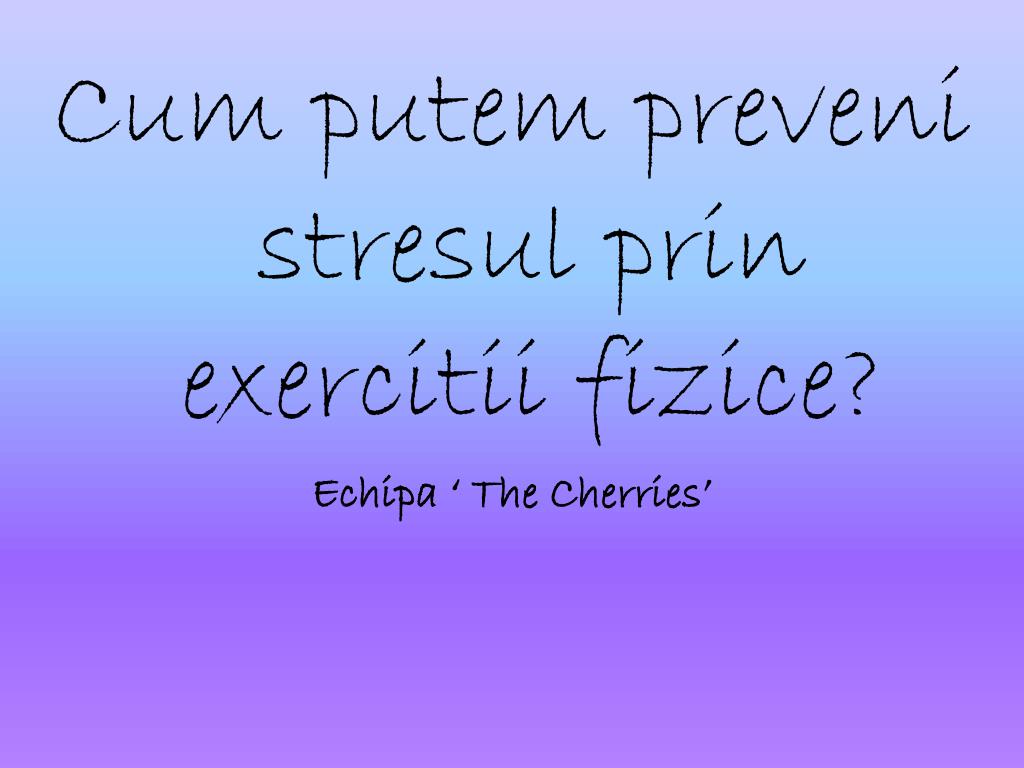 Sport si Sanatate. Cum putem preveni stresul prin exercitii fizice ? Echipa ‘ The Cherries’.