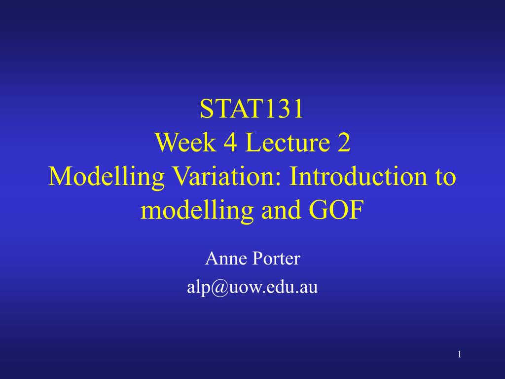 STAT131Week 4 Lecture 2 Modelling Variation: Introduction to modelling and GOF Anne Porter alp@uow.edu.au