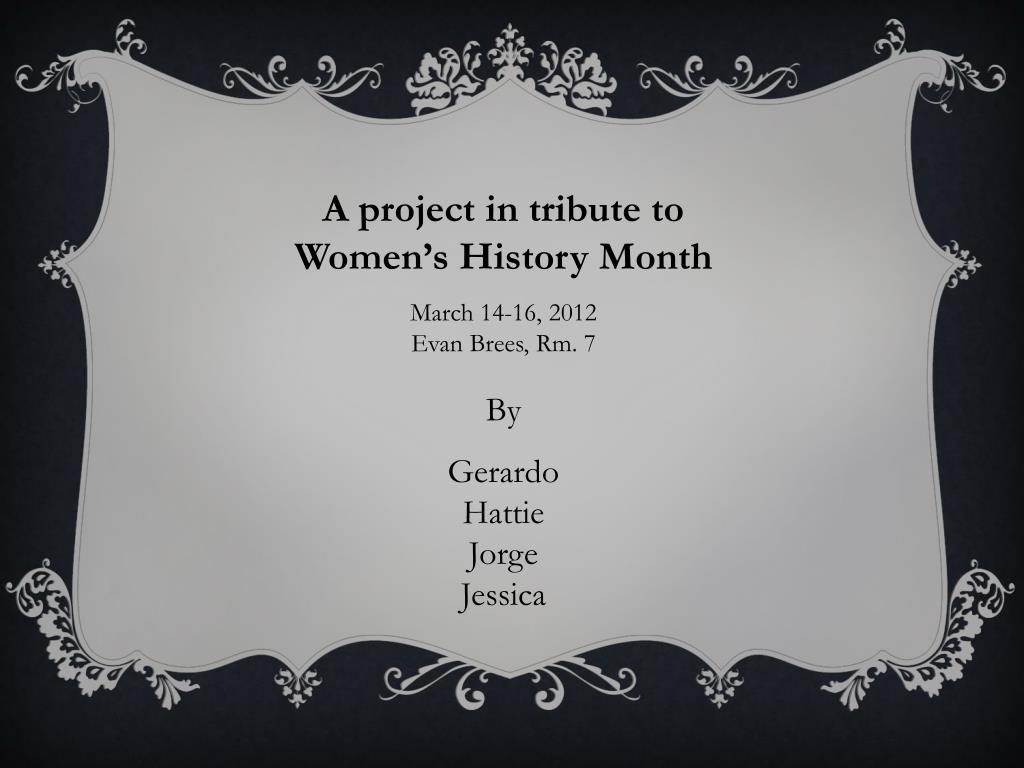 A project in tribute to Women’s History Month March 14-16, 2012 Evan Brees, Rm. 7 By Gerardo Hattie Jorge Jessica