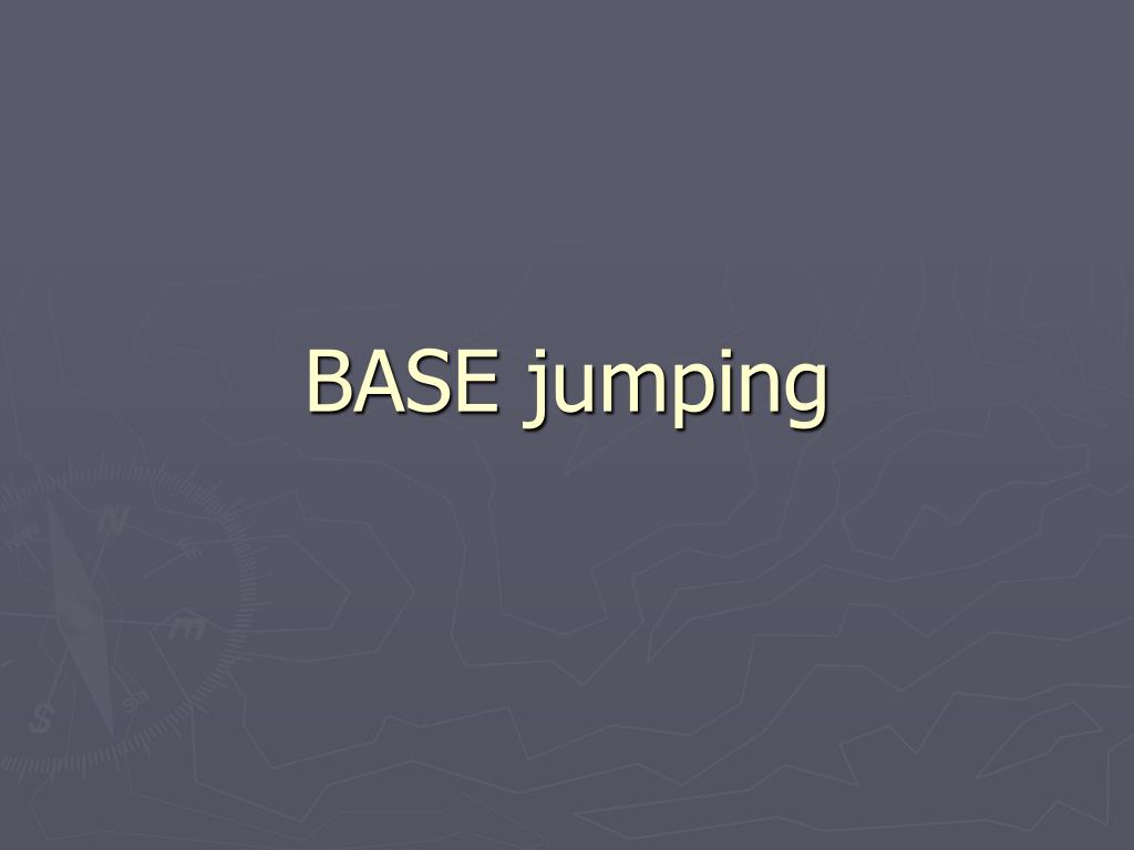 BASE jumping B stands for Buildings A stands for Antenna (an uninhabited tower) Sstands for Span (a bridge, arch, or dome) E stands for Earth (a cliff or other natural formation)