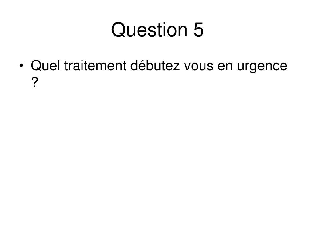Réponse 4 • Échodoppler rénal, montre • une atrophie éventuelle du rein du côté de la sténose • Une diminution du flux, mesure le degré de sténose, évalue le retentissement en aval, apprécie les index de résistance intraparenchymateuse • Angioscanner spiralé. • Montre sténose, calcifications artérielles • Mais injection d’iode et irradiation. • AngioIRM: • Visualisation directe des artères rénales, non néphrotoxique, mais accès plus restreint, majoration des lésions. Risque de toxicité cutanée si ClCreat< 30 ml/mn • Ionogramme urinaire à la recherche d’un hyperaldostéronisme secondaire lié à la sécrétion de rénine