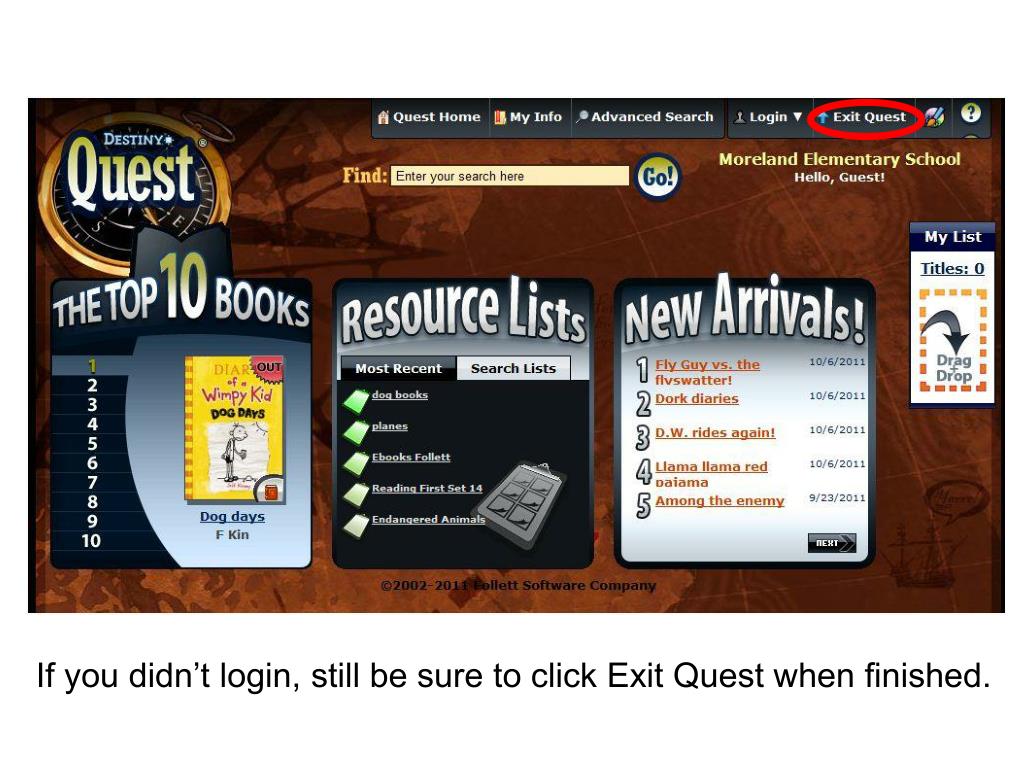 If you didn’t login, still be sure to click Exit Quest when finished.