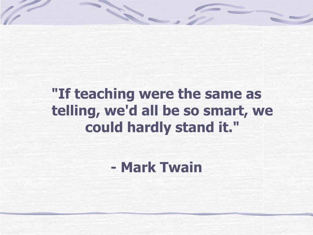"If teaching were the same as telling, we'd all be so smart, we could hardly stand it." - Mark Twain