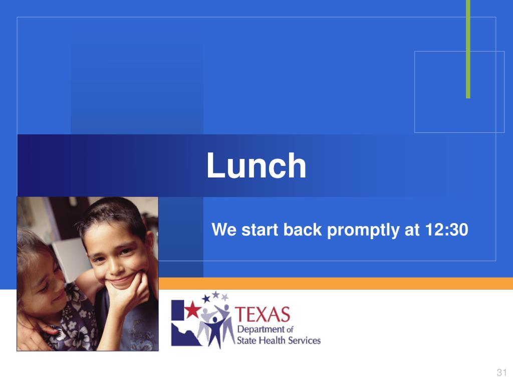 Lunch We start back promptly at 12:30