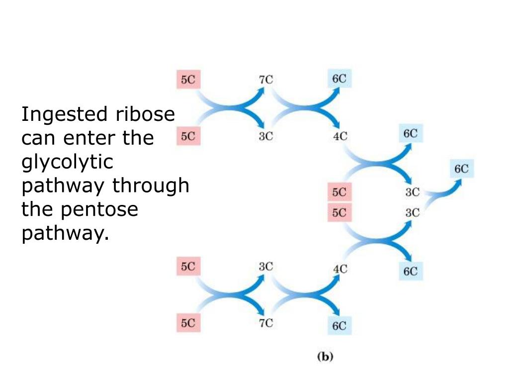 Ingested ribose can enter the glycolytic pathway through the pentose pathway.