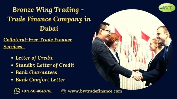 Watch this slideshare presentation to know more about Bronze Wing Trading, the leading trade finance company in Dubai and also the different types of Trade Finance Instruments offered by us. To get Trade Finance support from European Banks on behalf of your company at ZERO Collateral, contact us today! Visit: https://www.bwtradefinance.com/<br><br>To discuss with us regarding your trade finance requirement, <br>Email us: support@bwtradefinance.com <br>Call Us: 971-4-5519699<br>Phone/WhatsApp/BOTIM: 971-50-4648761<br><br>