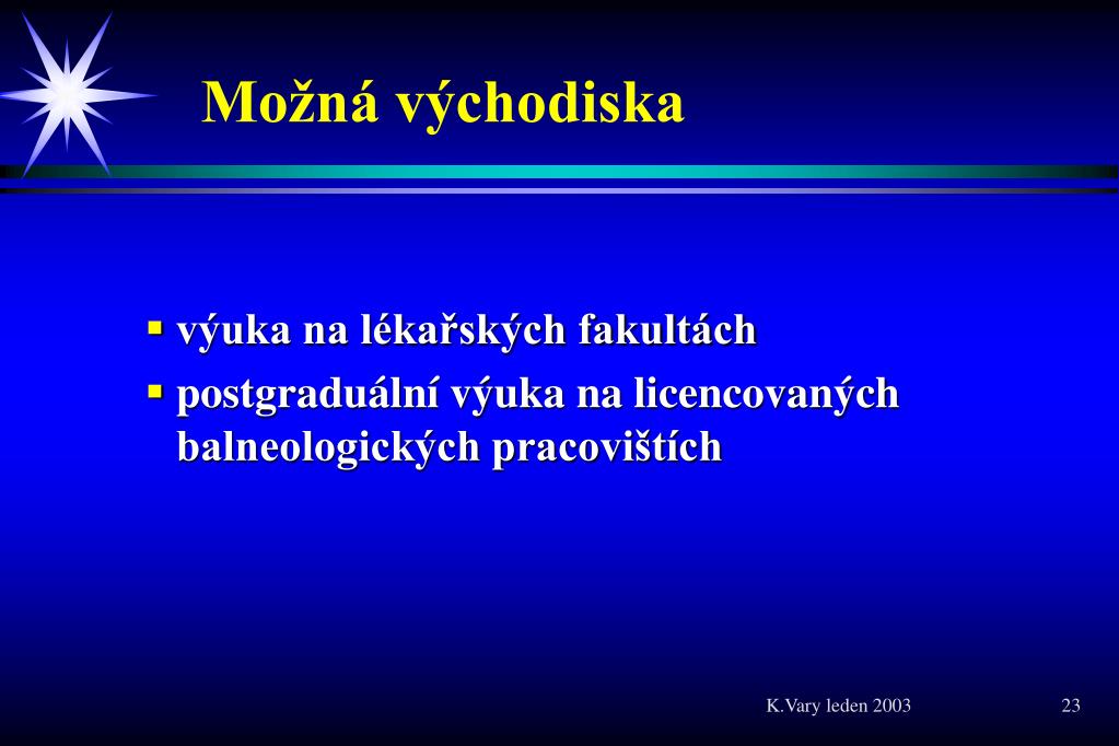 Možná východiska • výuka na lékařských fakultách • postgraduální výuka na licencovaných balneologických pracovištích