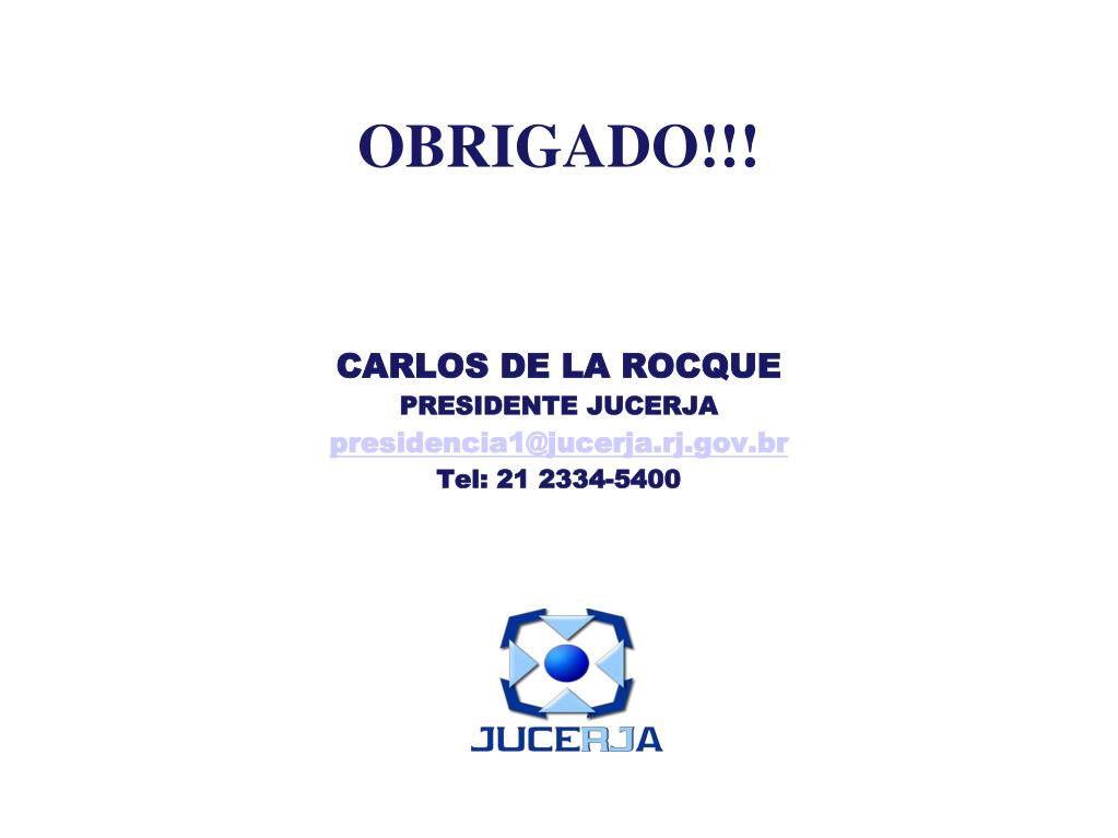 OBRIGADO!!! CARLOS DE LA ROCQUE PRESIDENTE JUCERJA presidencia1@jucerja.rj.gov.br Tel: 21 2334-5400