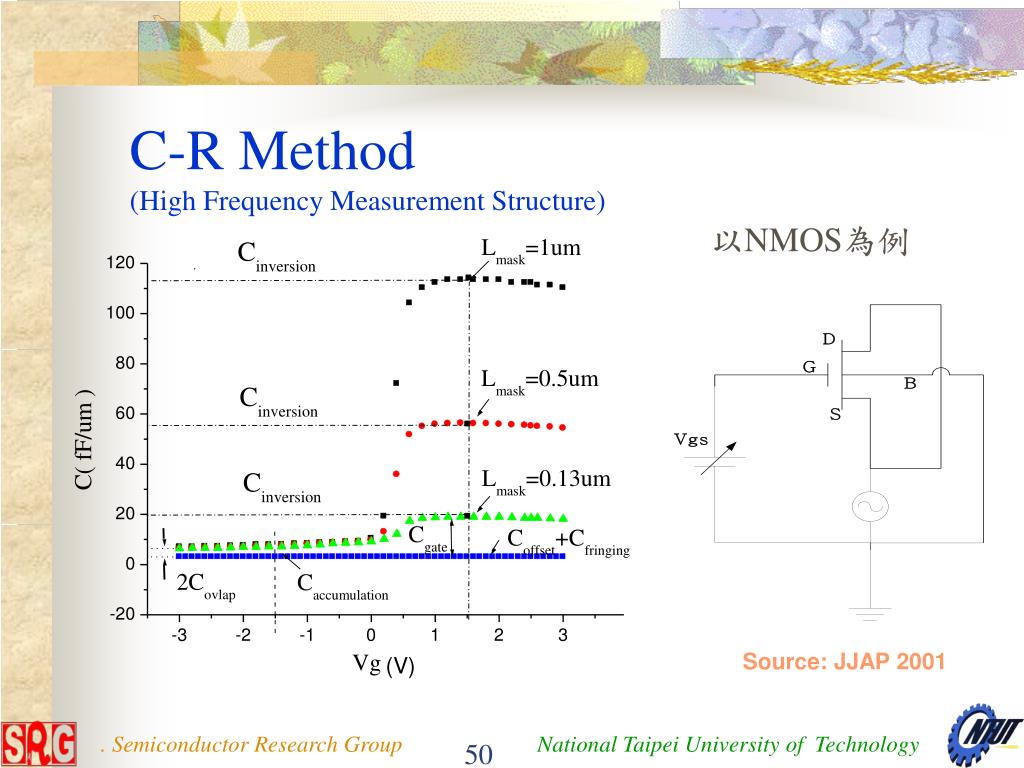C-R Method(High Frequency Measurement Structure) 以NMOS為例 Source: JJAP 2001