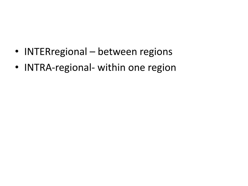 INTERregional – between regions • INTRA-regional- within one region